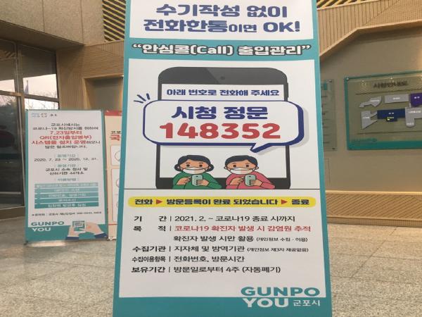 [한국연예축제일보, 유혜경기자] 군포시는 코로나19에 따른 효율적 출입명부 관리를 위해 14 대표번호를 통한 '간편 전화번호 기반 출입명부 서비스'를 시행하고 있다고 밝혔다.