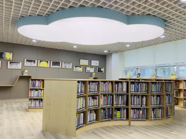 1층 어린이자료실은 편안한 좌식 열람공간으로 구성, 움직임이 많고 활동적인 어린이들에게 안전하고 편안한 독서환경을 제공한다. 곳곳에 어린이들이 좋아할 만한 아지트를 조성하였으며, 벽에는 그림책 전시코너를 신설하여 어린이들이 꿈과 상상력을 펼칠 수 있는 공간으로 변신하였다.