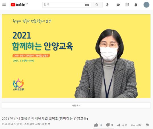 [한국연예축제일보, 유혜경기자] 안양시 인재육성재단(이사장 최대호)가 지난 9일 유튜브와 줌을 이용한 비대면 방식으로 ‘2021 함께하는 안양교육’ 사업 설명회를 진행했다.