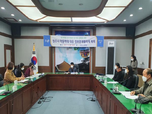 청주시 아동학대 대응 정보연계협의체는 청주시와 6개 기관 간 협약을 통해 위기아동 조기 발견 및 긴밀한 아동학대 대응을 위해 구성됐으며 매월 1회 정기적으로 회의를 개최한다.