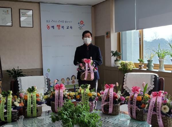 이번 플라워버킷 챌린지는 지난해말 동해시 코로나19 확산에 따라 선별진료소 제공에?협조해준 △청운초, △북삼초, △묵호초, △동호초, △동해중앙초,?△묵호중, △북평중, △예람중 등 관내 학교 8곳에 꽃바구니를 전달하였다.?