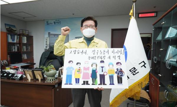 [한국연예축제일보, 유혜경기자] 유덕열 동대문구청장이 지난 15일 필수노동자를 응원하는 ‘고맙습니다, 필수노동자’ 캠페인에 참여했다.