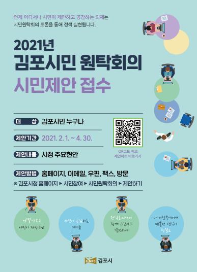 시는 매년 시민제안 접수를 통해 「2021년 김포시민 원탁회의」 의제를 발굴하고 원탁회의 공론화를 통해 주민생활 밀착형 과제를 해결해 오고 있다.