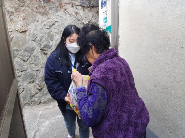 인천항만공사 후원으로 열린 이날 행사는 코로나19로 인한 사회적 거리는 멀리, 따뜻한 이웃의 정은 가까이 나누기 위해 마련됐다. 설을 맞아 명절 음식을 나누고, 연휴 동안 경로식당을 운영하지 못해 식사를 제대로 챙기기에 어려움이 있는 어르신들에게 식사를 대체할 수 있는 레토르트식품, 과일, 떡 등으로 구성한 꾸러미를 전달했다.