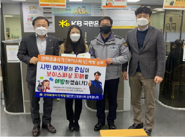 대전둔산경찰서장(총경 이동기)은 2월 16일 11:00 보이스피싱 피해를 예방한 KB국민은행 둔산선사종합금융센터점 홍문경 대리에게 감사장 및 신고보상금을 지급하였다.
