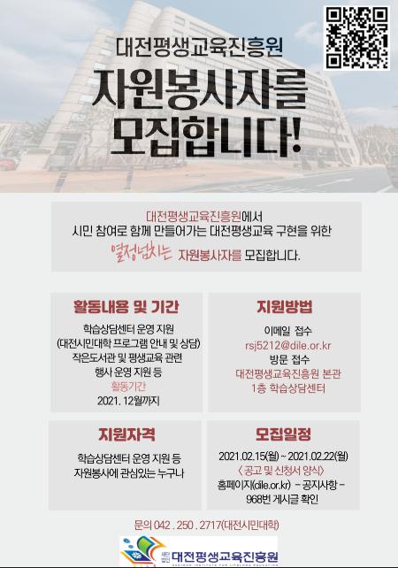 대전평생교육진흥원 2021년 자원봉사자 모집