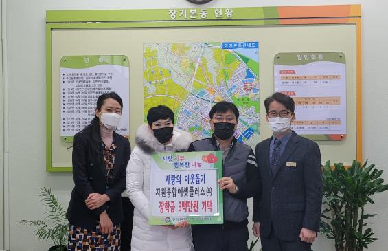 [한국연예축제일보, 유혜경기자] 지원에셋플러스 주식회사는 지난 17일(수) 장기본동행정복지센터(동장 김광식)를 방문하여 관내 저소득 중·고등학생들을 위한 장학금 삼백만원을 기탁했다.