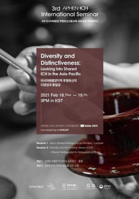 이번 학술회의는 2018년 열린 제1차 세미나를 시작으로 3회차를 맞는 국제학술행사로 무형유산의 다양성과 동질성에 대한 12개의 발표가 이뤄질 예정이다.