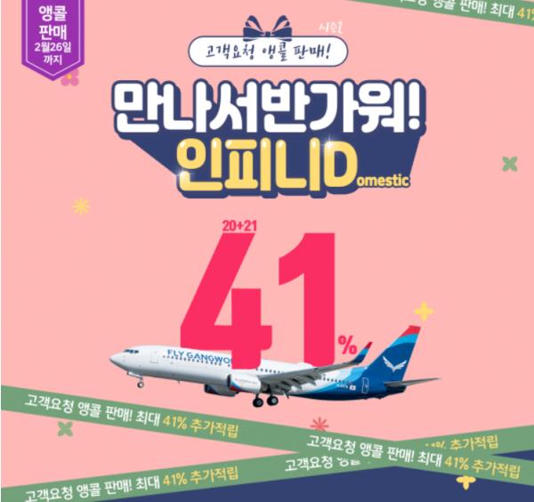 ‘인피니 티켓 시즌2(인피니D)’는 플라이강원이 출시한 항공 회원권 개념의 상품으로 패키지 성격에 따라 기간 내 무제한으로 사용 가능한 티켓이다.
