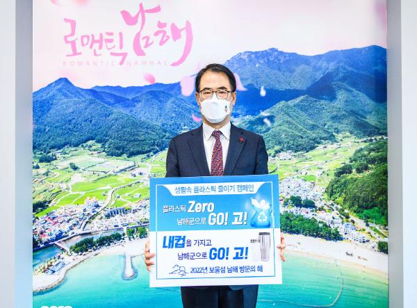 [한국연예축제일보, 유혜경기자] 장충남 남해군수는 2월 15일 환경부에서 플라스틱 줄이기 캠페인 일환으로 추진하는 ‘고고챌린지’에 동참했다.