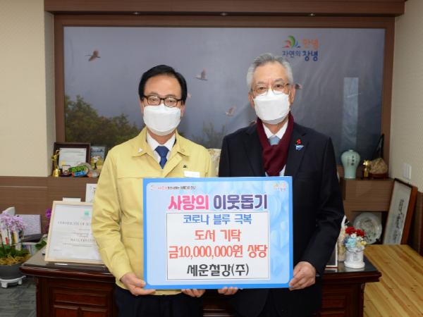 [한국연예축제일보, 유혜경기자] 창녕군은 신정택 세운철강㈜ 회장이 지난 16일 군을 방문해 코로나19 장기화로 지친 군민들에게 전달해달라며 1,000만 원 상당의 도서를 기탁했다고 밝혔다.