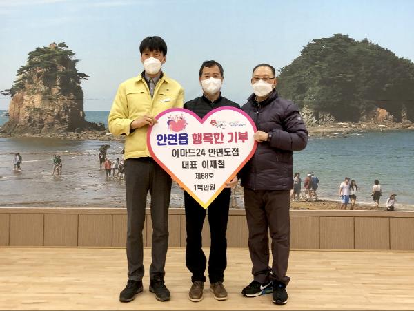 [한국연예축제일보, 유혜경기자] ‘이마트24 안면도점(대표 이재철)’이 지난 16일 안면읍지역사회보장협의체가 추진하는 ‘안면읍 행복한 기부’에 100만 원을 기탁했다.