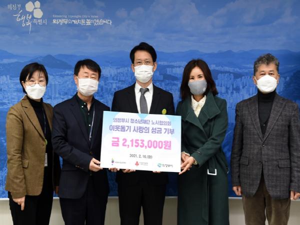 [한국연예축제일보, 유혜경기자] 의정부시는 2월 16일 의정부시 청소년재단 노사협의회에서 의정부시 이웃돕기 창구에 성금 215만 원을 기탁했다고 밝혔다.