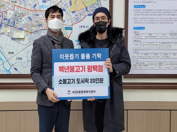 [한국연예축제일보, 유혜경기자] 평택시 비전동 소재 백년불고기는 17일 지역 내 거주하는 한부모 가족 및 독거노인 등 저소득층 이웃을 위해 소불고기 도시락 20인분을 비전2동행정복지센터에 기탁했다.