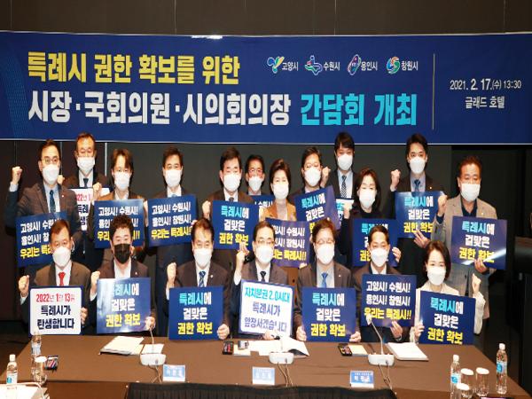 그동안 4개 특례시 시장단, 시의회 의장단이 각각 회의를 연 바 있지만 시장, 국회의원, 시의회 의장이 한자리에 모이는 건 이번이 처음이다.