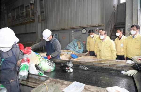 이군수는 환경관리센터에 방문하여 쓰레기 선별장과 매립장 근무자를 격려하고, 현황 청취 후 매립지 추가 확보방안에 대해 논의하였고, 하수처리장에서는 시설 확충과 인력부족 등의 애로사항도 청취했다.