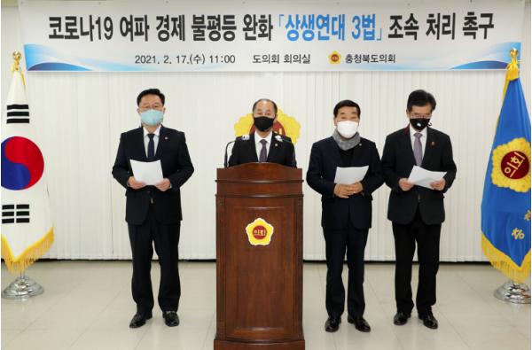 [한국연예축제일보, 허난세기자] 충북도의회는 코로나19로 인한 소상공인과 자영업자의 경제 불평등 완화를 목적으로 하는「상생연대 3법」조속 처리 촉구를 위해 힘을 모았다.