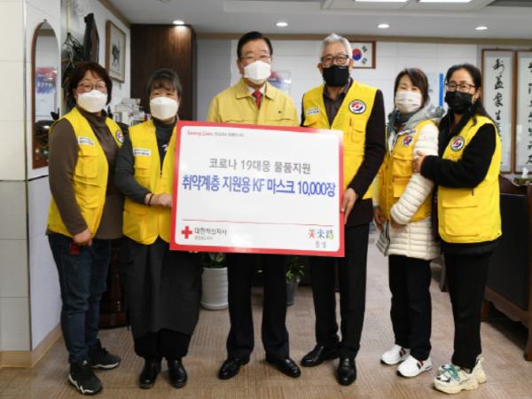 [한국연예축제일보, 유혜경기자] 홍성군은 지난 16일 대한적십자사 홍성지구협의회(회장 황정애)로부터 재난취약계층을 위한 KF-94 마스크 1만장을 전달 받았다고 밝혔다.