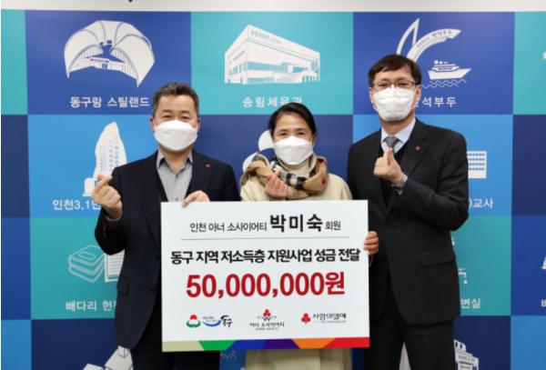 [한국연예축제일보, 유혜경기자] 인천광역시 동구는 박미숙 전 동구 화도진문화원장이 지난 16일 이웃돕기 성금 5천만 원을 쾌척했다고 밝혔다.