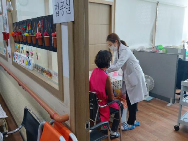 코로나19 백신의 원활한 접종을 위한 요양시설 방문해 예방접종 시연으로 진행했다.