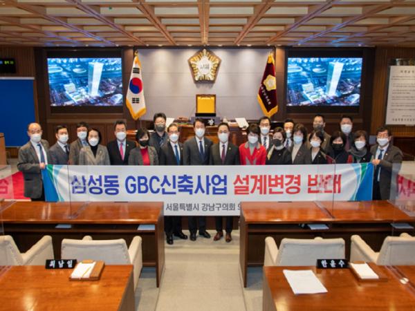 이날 결의문 발표에는 한용대 의장을 비롯한 강남구의회 의원들이 동참했다. 구의회는 이날 결의문을 통해“수 년 간 주민들의 기대를 받으며 추진되어 온 대규모 개발사업의 갑작스런 변경을 지적”하며,“수백만 명의 일자리와 경제적 효과가 창출될 수 있도록 원안대로 GBC 신축사업을 진행해야한다”라고 강력하게 요구했다.