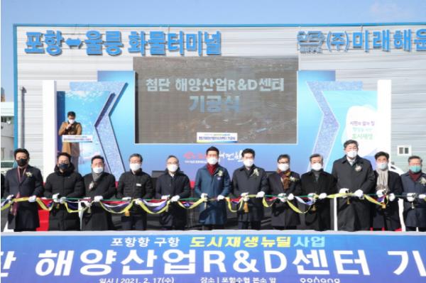 포항시는 17일 남구 송도동 송도부두에서 포항항 구항 일원 도시재생 뉴딜사업(76만㎡)의 핵심 앵커시설인 첨단 해양산업 R&D센터의 착공식을 개최했다.