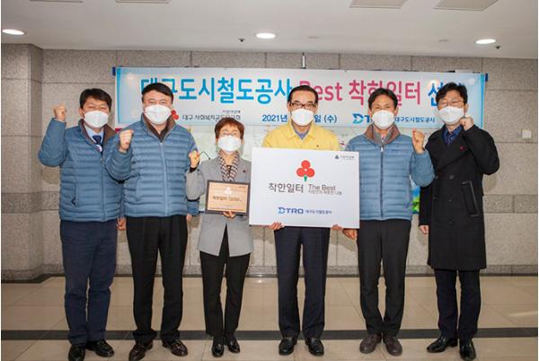 [한국연예축제일보, 유혜경기자] 대구도시철도공사는 그동안 꾸준하게 지역내 불우이웃의 생계·의료비 지원 및 천재지변으로 인한 재난재해 복구비 지원 등에 앞장서 온 결과 2월 17일(수) 사회복지공동모금회에서 주관하는 『BEST 착한일터』에 지역 공기업 최초로 선정됐다고 밝혔다.