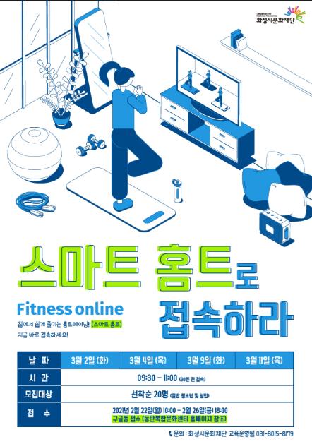 (재)화성시문화재단(대표이사 이종원)은 오는 3월, 시민들을 대상으로 비대면 온라인 스포츠 특강 '스마트 홈트로 접속하라'를 진행한다.