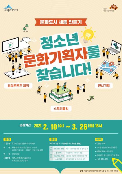 [한국연예축제일보, 유혜경기자] 세종시문화재단은‘문화도시 세종 만들기’에 함께 할 「청소년문화도시기획단 3기」단원을 모집한다.