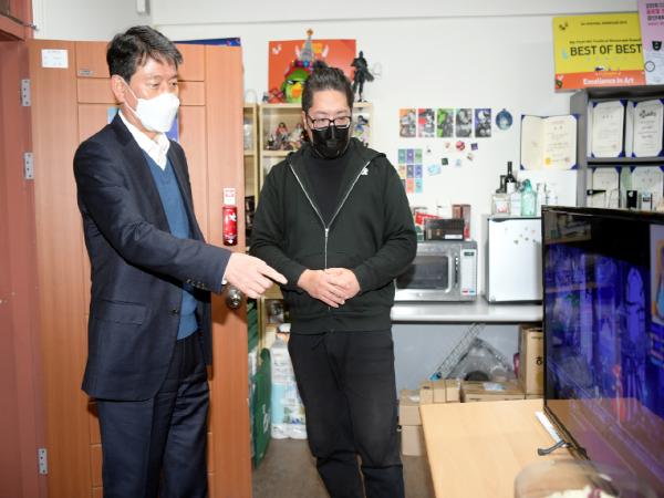 조인철 문화경제부시장은 사우스포게임즈(주) 박상우 대표과 기업현황, 게임개발 과정 등을 듣고, 지역 게임산업 발전을 이끌어 줄 것을 요청했다.