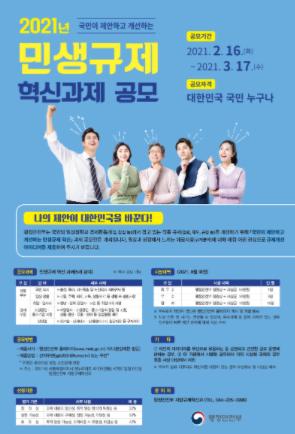 [한국연예축제일보, 유혜경기자] 남해군은 군민의 일상생활과 경제활동에 직결된 현장규제 애로사항을 발굴·개선하기 위해 ‘국민이 제안하고 개선하는 민생규제 혁신과제’ 공모를 2월 16일부터 다음달 17일까지 실시한다고 밝혔다.