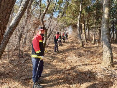 상리면 무선리 무이산 인근에서 실시한 이날 훈련에서는 산불 발생 시 대응 역량을 강화하기 위해 진화대원 및 살수차를 동원하여 장비의 사용 방법을 교육하고, 진화장비 시연을 통해 원활한 장비 사용법을 익혔다.