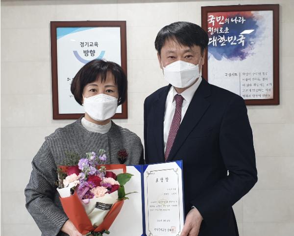[한국연예축제일보, 허난세기자] 안양시의회 김필여 국민의힘 대표의원(호계1.2.3.신촌동)은 지난 2월 17일 안양중학교 강화천 교장으로부터 안양중학교 교육환경 개선사업에 이바지한 공로를 인정받아 표창장을 받았다.