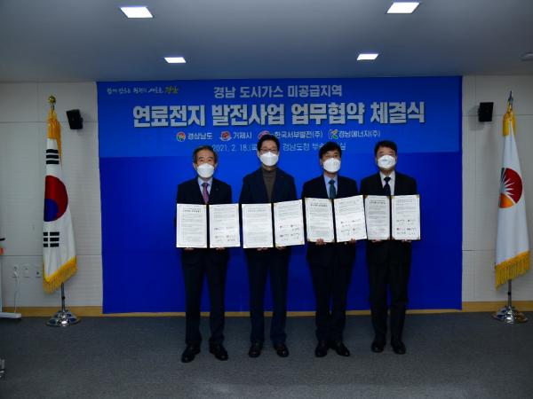 거제시는 18일, 경남도청 소회의실에서 김경수 경상남도지사, 변광용 거제시장, 한국서부발전(주) 사장 김병숙, 경남에너지(주) 대표이사 정회가 참석한 가운데 ‘도시가스 미공급지역 연료전지 공동개발 업무협약식’을 가졌다.