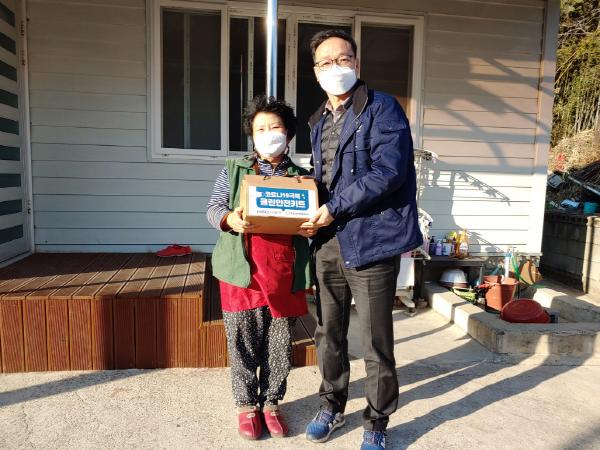 ‘코로나19 극복 키트’는 비타민, KF94 마스크, 손 세정제, 손 소독제, 항균물티슈 등 8종으로 구성되었으며, 키트를 지원받은 독거노인 김 모씨(80세)는 “홀로 살며 시골이라 마스크 구입하기가 불편했는데 필요한 여러 물품을 받아 잘 사용하겠다”며 고마움을 전했다.