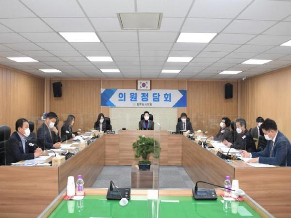 이날 정담회에서는 집행부에서 제출한 ▶기획감사담당관 소관「기본소득 지방정부협의회 규약 동의안」,「참좋은지방정부협의회 운영 규약 일부개정규약 동의안」▶사회복지과 소관「협소?노후 경로당 2개소 취득 계획 보고」,「경로당 환경개선 물품 예산 편성 계획 보고」▶일자리경제과 소관「경기도일자리재단 이전 추진현황 보고」▶관광휴양과 소관「동두천시 유아숲 교육 운영 민간위탁 동의안」▶도시재생과 소관「2021년 도시재생지원센터 주요 업무 계획 보고」등 7건의 안건과 의원발의 안건으로 ▶정문영 의원이 대표 발의한「동두천시 공동주택관리 조례 일부개정조례안」▶김승호 의원이 대표 발의한「동두천시 체육시설 관리 및 운영 조례 일부개정조례안」등 2건의 안건을 포함한 총 9건의 안건에 대한 제안설명과 함께 집행부와 의회 간 심도 있는 의견 교환의 시간을 가졌다.