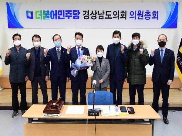 2월 17일 오후, 도의회 대회의실에서 민주당 의원총회를 개최, 2월 15일 경남도의회 더불어민주당 선관위 4차 회의에서 대표의원으로 합의 추대된 빈지태 의원과 후반기 대표단을 만장일치로 의결했다.
