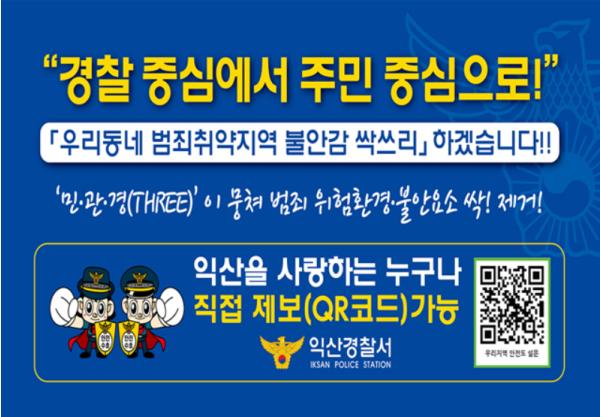 [한국연예축제일보, 김채영기자] 익산경찰서는 치안수요자 중심 선제적·예방적 범죄환경 개선을 위해 큐알(QR)코드 설문조사 플랫폼을 활용한 비대면 상시 의견접수 체계를 구축 했다.