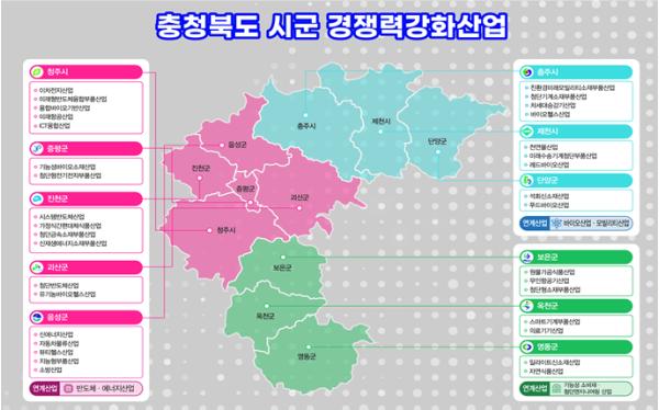 [한국연예축제일보, 안성경기자] 충북도가 지역 경제성장의 중심이 되는 지역산업의 미래가치를 재발견하고 산업잠재력을 경쟁력으로 키우고자 11개 시군과 함께‘시군 경쟁력강화산업’을 선정하고 본격적인 지원에 나선다.