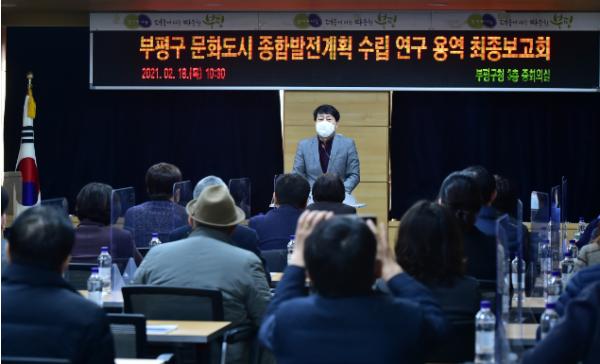 구는 18일 구청 중회의실에서 ‘부평구 문화도시 종합발전계획 수립 연구용역 최종보고회’를 진행했다.
