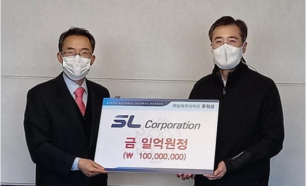 에스엘(대표이사 이충곤 회장)은 17일 오후, 에스엘 경산 진량공장에서 국립대구과학관(관장 김주한) 미래형자동차전용관 건립에 1억 원을 기부했다.