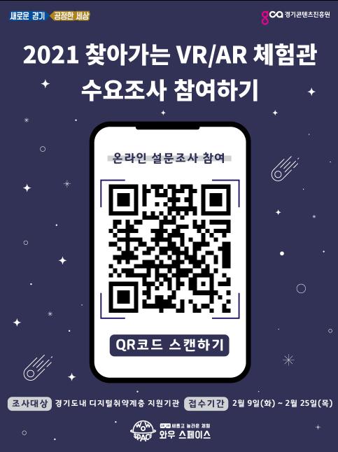 [한국연예축제일보, 김상호기자] 경기도가 노인, 장애인, 저소득층 등 디지털 취약계층을 대상으로 추진 중인 ‘찾아가는 가상현실/증강현실(VR·AR) 체험관(와우스페이스)’ 사업에 참여할 복지시설이나 특수학교 등 디지털 취약계층 지원기관을 모집한다.