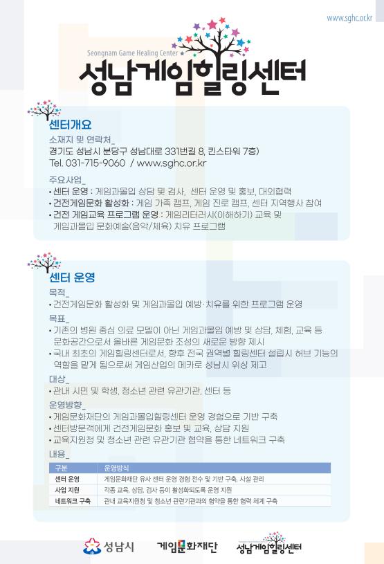 건전 게임문화 활성화를 위한 지역행사 홍보 참여, 게임 가족 캠프, 게임 진로 캠프도 열린다.