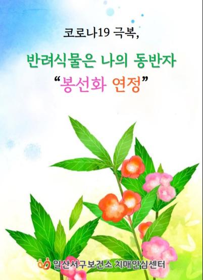 [한국연예축제일보, 황해식기자] 고양시 일산서구보건소 치매안심센터는, 코로나19 장기화로 인한 우울감 및 인지적 공백 증대 등의 문제를 반려식물로 해소하는 ‘반려식물은 나의 동반자, 봉선화 연정’ 사업을 오는 3월부터 운영한다.