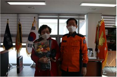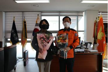 이날 고정희 대표와 송춘근씨는 현장활동에 노고가 많은 소방공무원의 현장활동에 조금이라도 보탬이 되고자 하는 마음을 전달해왔다.