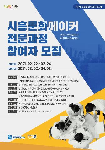 [한국연예축제일보, 유혜경기자] 시흥시가 문화특화지역조성사업의 일환으로 2021 문화두리기 역량강화아카데미 ‘시흥문화메이커’ 전문과정 참여자를 오는 22일부터 24일까지 모집한다.
