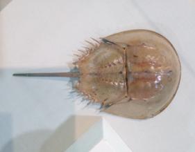 3월의 해양자연사 전시품인 ‘투구게’는 살아있는 화석이라고 불릴 만큼 4억 5천만 년 전부터 지구에 생존해오고 있는 생물이다. 청색을 띠는 투구게의 혈액은 백신 개발 등에도 이용되며, 최근 개체 수가 감소하고 있다.
