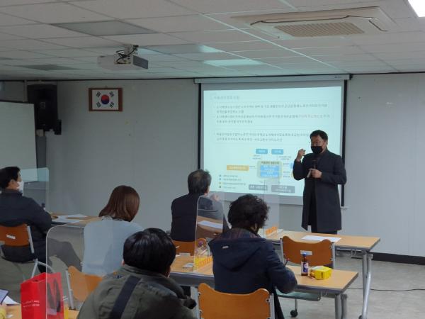 지난 18일 개강을 시작으로 오는 3월까지 총 5회에 걸쳐 교육이 진행될 예정으로 교육내용은 △협동조합의 이해 △마을관리사회적협동조합 설립 절차 및 주의사항 △설립 서류작성(정관) △사업계획서 작성 △운영실무 등으로 진행될 예정이다.