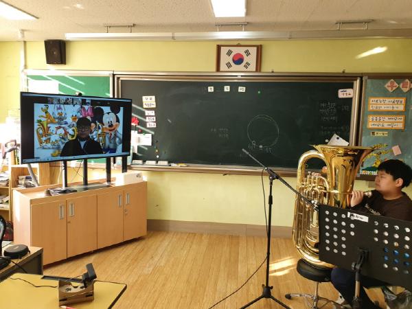 관악 윈드오케스트라를 운영하는 연천노곡초는 코로나19 상황에서 안전하게 겨울방학 계절학교 캠프를 운영하기 위해 학교 관악기를 각 가정에 무료로 대여하고 비대면으로 관악기를 배우는 프로그램으로 구성하여 학생들의 음악적 감수성 함양과 코로나19로부터 안전한 학교라는 두마리 토끼를 잡기 위해 노력하고 있다. 특히 이번 겨울방학 계절학교 캠프는 학생 3~4명당 1명의 관악 선생님과 비대면으로 수업을 진행하여 학생들이 충분히 연습하고 자신의 악기 연주를 교정받고 있다.