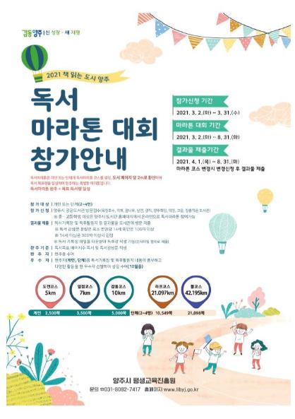 [한국연예축제일보, 나봉진기자] 양주시는 오는 3월 2일부터 8월 31일까지 시민 독서 생활화와 책의 가치 공유를 위한 ‘독서마라톤 대회’를 개최한다.